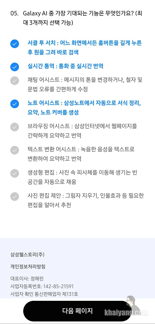 설문 조사를 하고 나서 다음 페이지를 누릅니다.