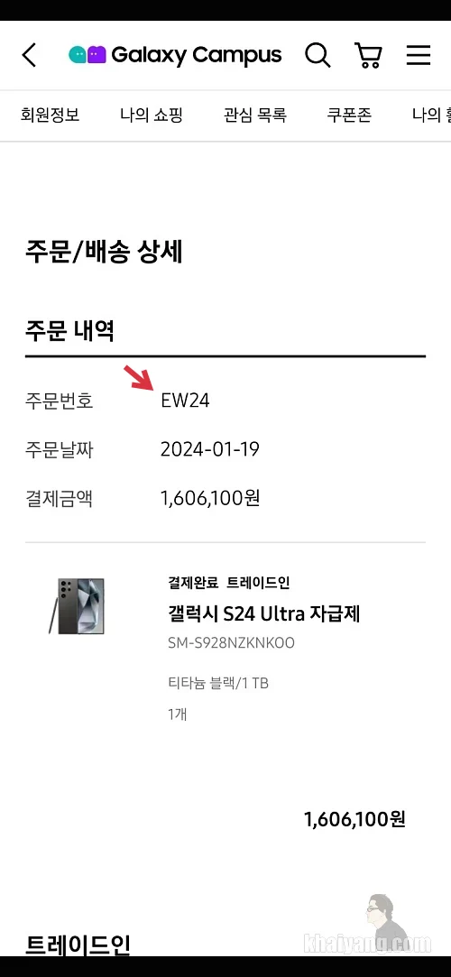 갤럭시S24 주문내역 항목에 주문번호 부분을 가운데 - 하이푼을 빼고 입력 합니다.