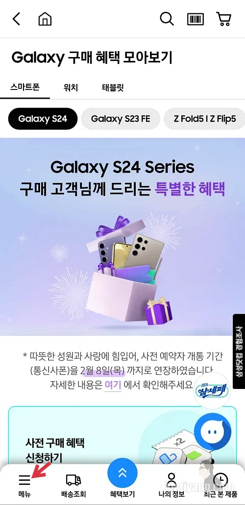 비싸게 구매한 갤럭시S24 시리즈니 받을 수 있는 혜택은 최대한 다 받으시기 바랍니다.