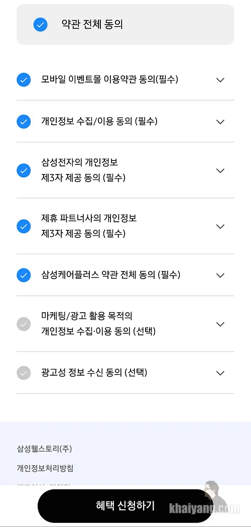 마지막으로 약관 동의를 하고 혜택 신청하기를 하면 끝 입니다.