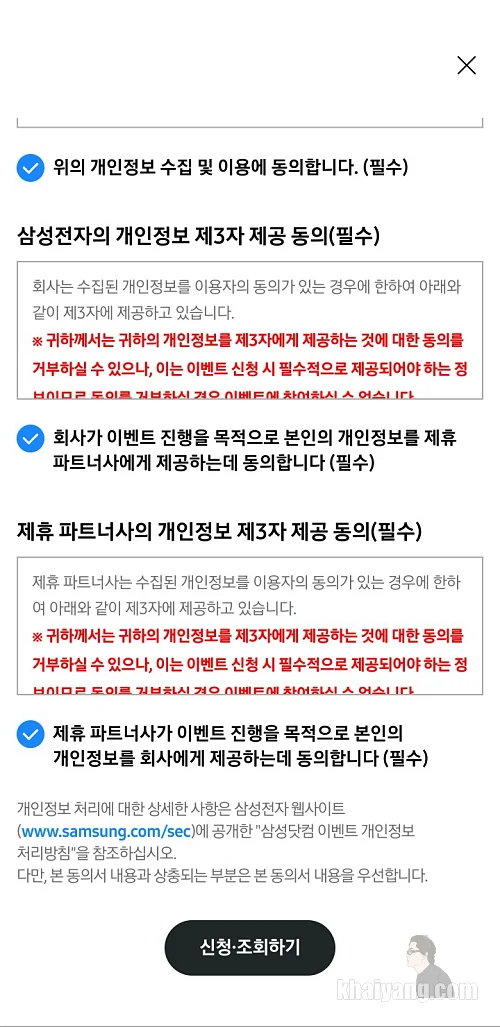 동의서 항목에 체크하고 다시 신청.조회 하기 버튼을 누릅니다.