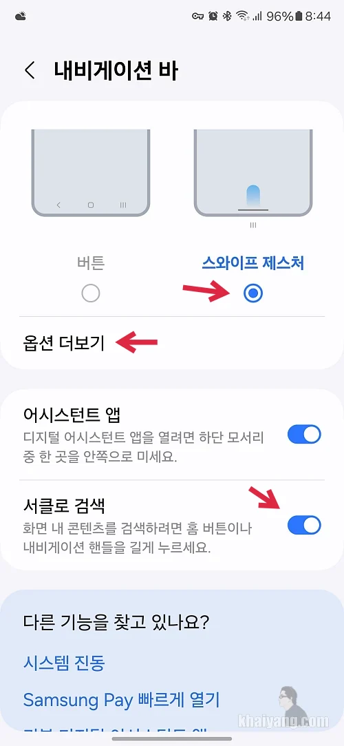 써클투서치 기능이 좋아도 저는 하단 내비게이션 바 제거하는 방법을 찾아서 결국 제거를 했습니다.