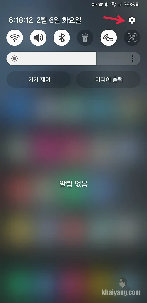 퀵 패널을 내려서 설정 메뉴로 들어 갑니다.