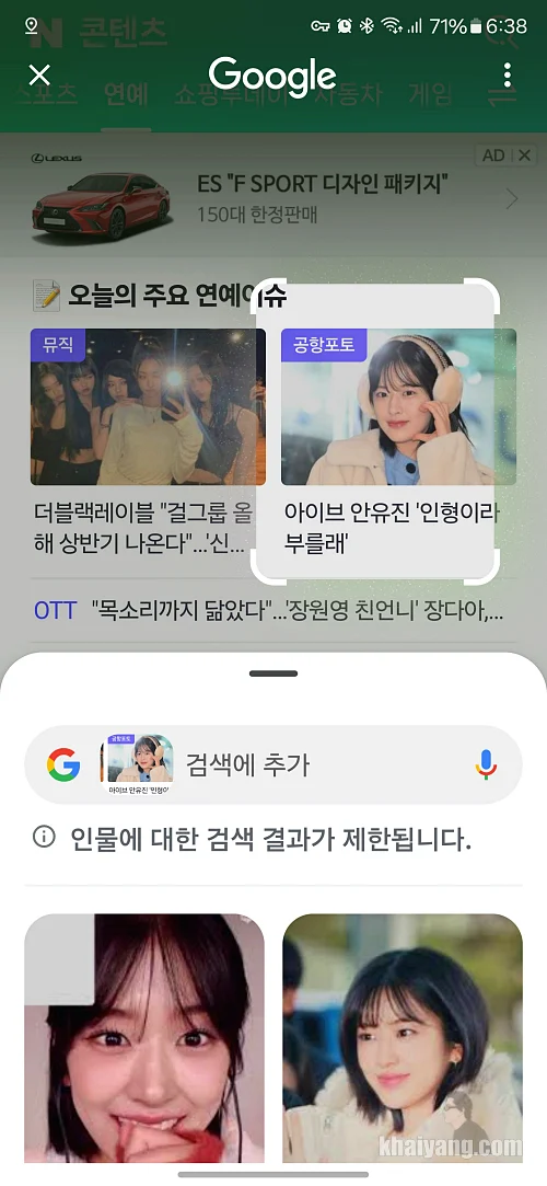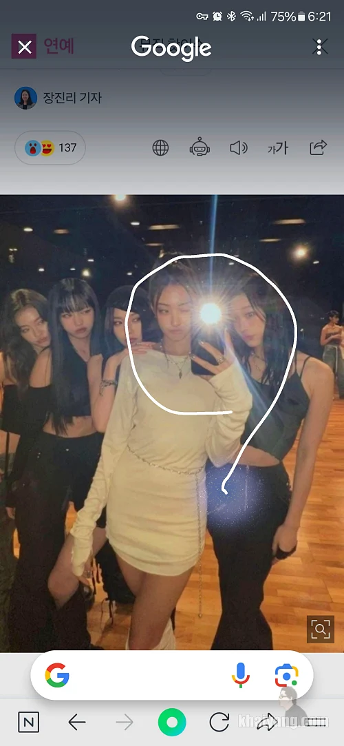 하단 가운데 부분을 꾹 누르면 화면이 바뀌는데 그때 손가락으로 원하는 부분에 동그라미를 그리면 그 부분에 대한 검색이 됩니다.