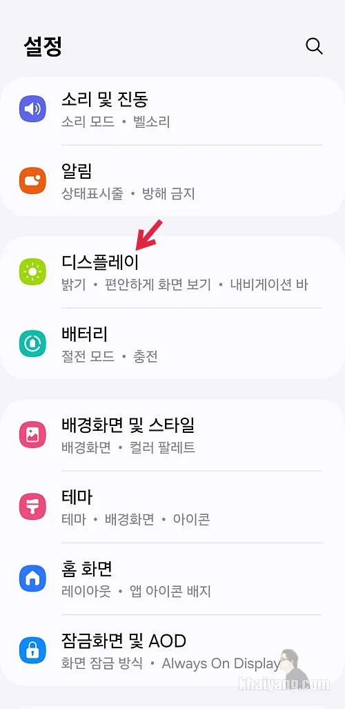 설정 메뉴에 있는 디스플레이 항목을 선택 합니다.
