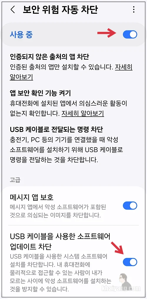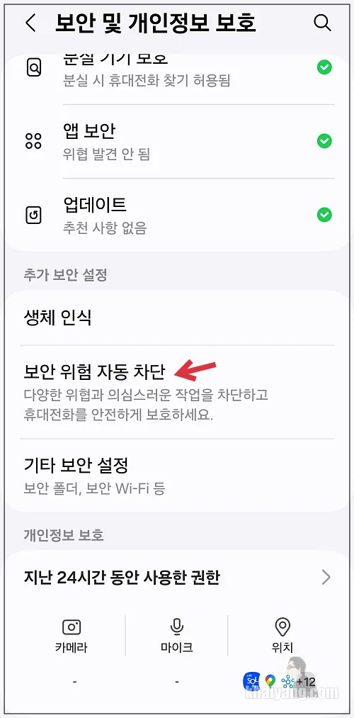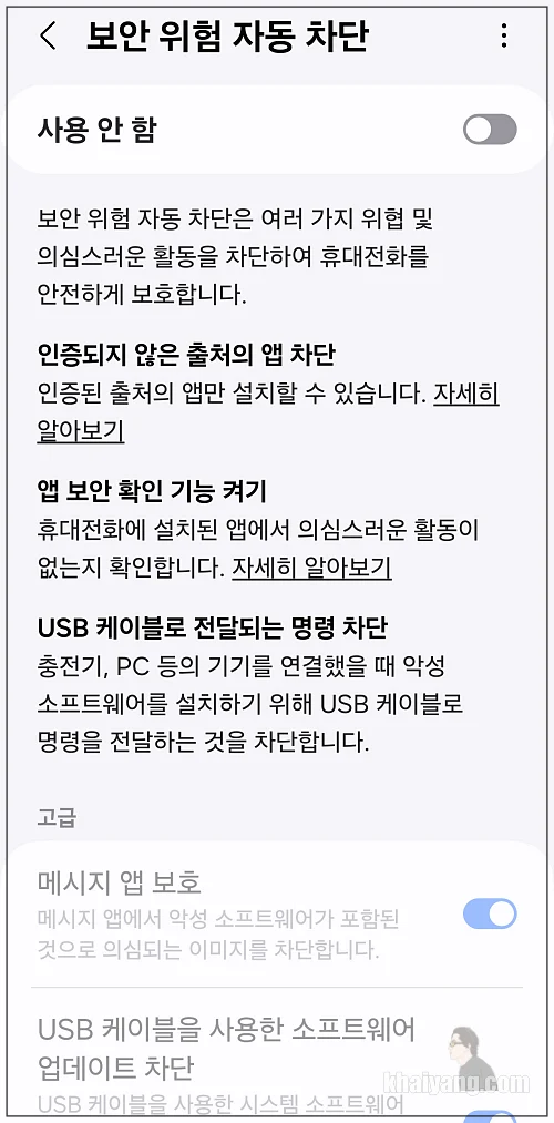원UI 6.0 부터 적용된 보안 위험 자동 차단 사용하기