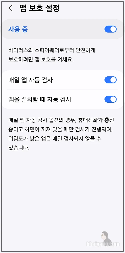 앱 보안 설정을 활성화 시키면 바이러스와 스파이웨어로부터 어느정도 안전하게 스마트폰을 보호할 수 있습니다.