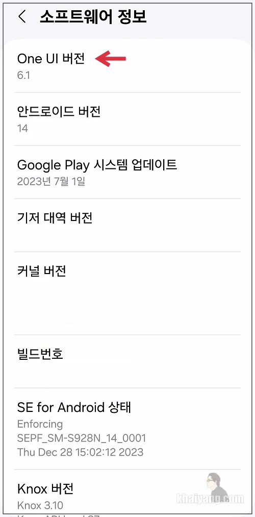 원UI 버전은 설정 항목에서 제일 하단에 있는 휴대전화 정보 항목에서 확인할 수 있습니다.