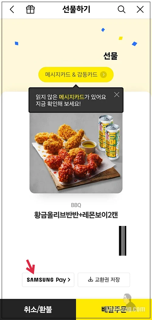 그 덕분에 이제 삼성페이에서도 카카오톡 선물하기 연동도 가능해졌습니다.