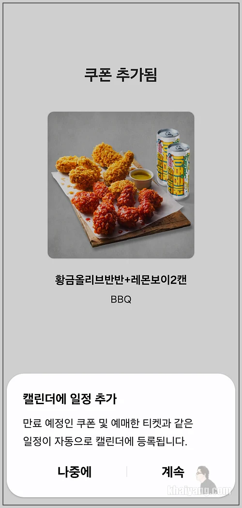 잠시후에 쿠폰 추가 됨 화면을 볼 수 있습니다.