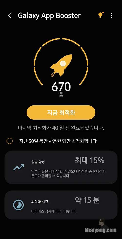 원UI 6.1 업데이트를 하고 나면 삼성 갤럭시 굿 가디언스 앱에서 최적화를 위해서 갤럭시 앱 부스터를 한번 돌려 주는 것이 좋습니다.