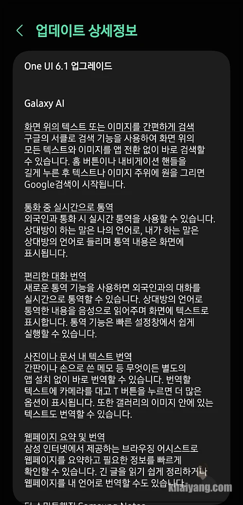 이번에 갤럭시S23 원UI 6.1 업그레이드를 소개 하면서 대화 통역, 서클투서치의 기능을 잠시 소개해 드렸습니다. 이외에도 상당히 다양한 개선 사항이 있는데 천천히 살펴 보면서 변화된 부분을 찾아 보시기 바랍니다.
