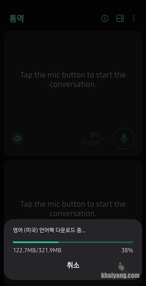 통역 기능을 실행하니 자동으로 영어(미국) 언어팩 다운로드가 진행이 됩니다. 영어 외에도 프랑스어, 일본어, 중국어, 스페인어 등 다양하게 지원하고 있으니 필요한 언어만 다운로드 받아서 사용할 수 있습니다.