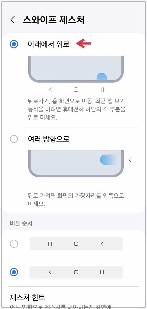 만약 여기서 기존에 사용하던 3 버튼식 기능을 사용하고 싶다면 왼쪽의 버튼 항목을 선택하면 됩니다.