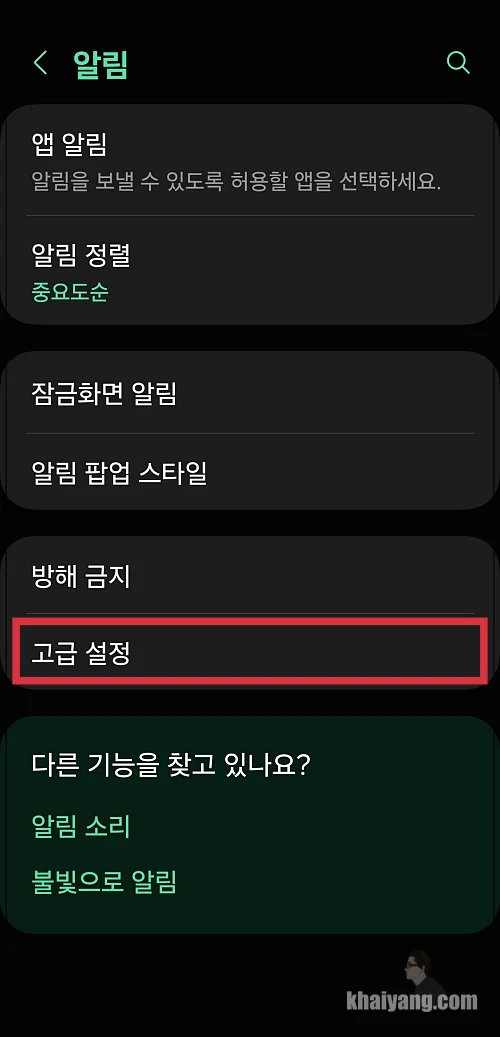 알림 항목에서 고급 설정을 선택 합니다.