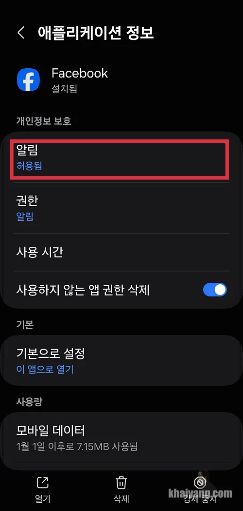 이 항목에서 앱의 다양한 알림 항목을 활성, 비활성화 시킬 수 있습니다.