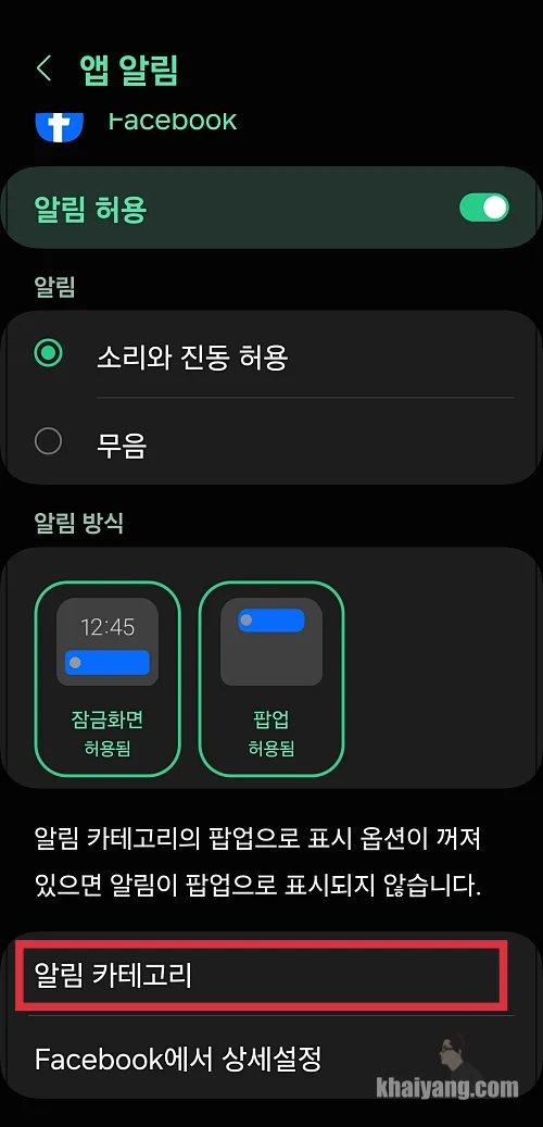 앱 알림이 활성/비활성 두개의 선택지만 있는 줄 알고 있는 분들도 있는데 자세히 살펴 보시면 앱 알림 카테고리를 통해서 다양한 알림 설정이 가능 합니다.