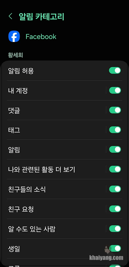 그렇기 때문에 알림 카테고리 항목에서 중요한 항목만 활성화 시켜서 사용하시면 됩니다.