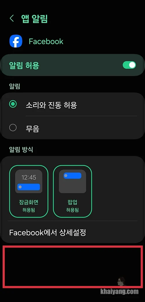 이 항목에서 앱의 다양한 알림 항목을 활성, 비활성화 시킬 수 있습니다.