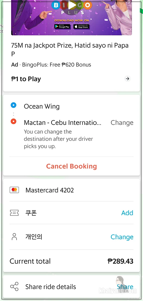 필리핀 주요 관광지에는 택시가 아닌 승차 공유 서비스인 그랩 서비스가 일반화 되면서 그랩을 사용할일이 많은데, 그럴때 신용카드 또는 체크카드를 연결하면 현금 없이 편하게 이용을 할 수 있습니다.