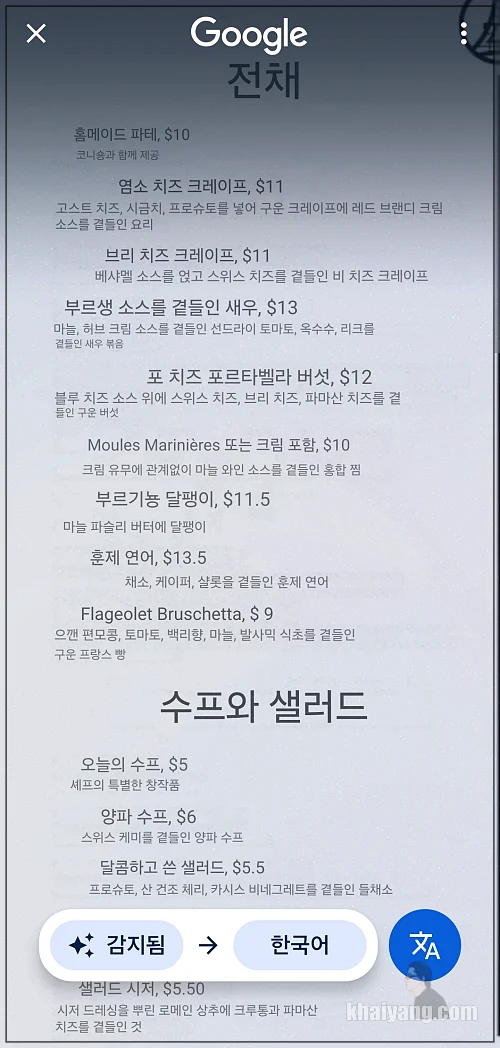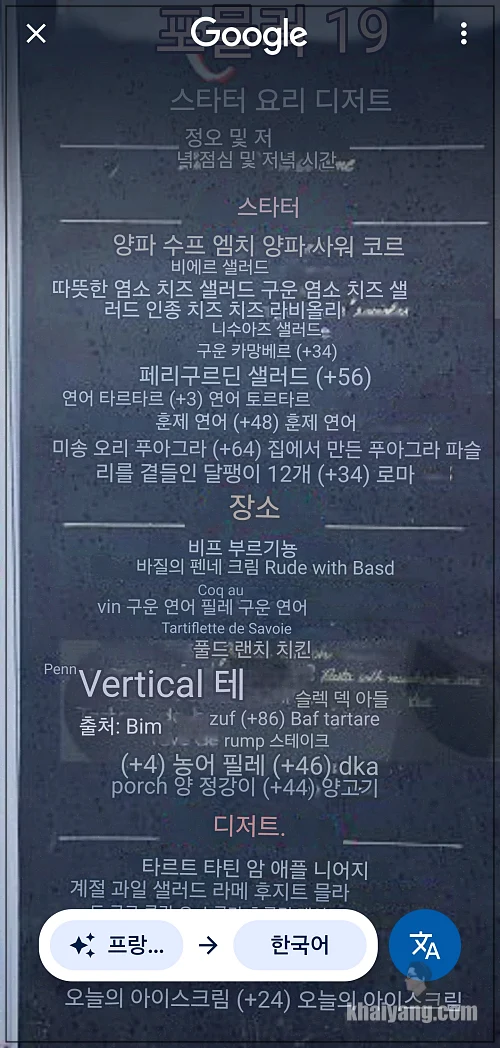 프랑스 메뉴판도 바로 바로 번역해 줍니다.