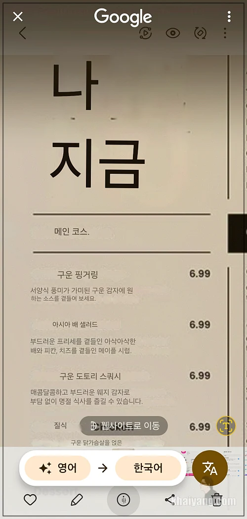 해외에 나가서 식당 메뉴판을 읽을 줄 몰라서 고생한 기억이 있을 겁니다. 그럴때는 구글 또는 빅스비 비전을 사용해도 되지만 서클투서치 이용시 좀 더 쉽게 이용할 수 있습니다.