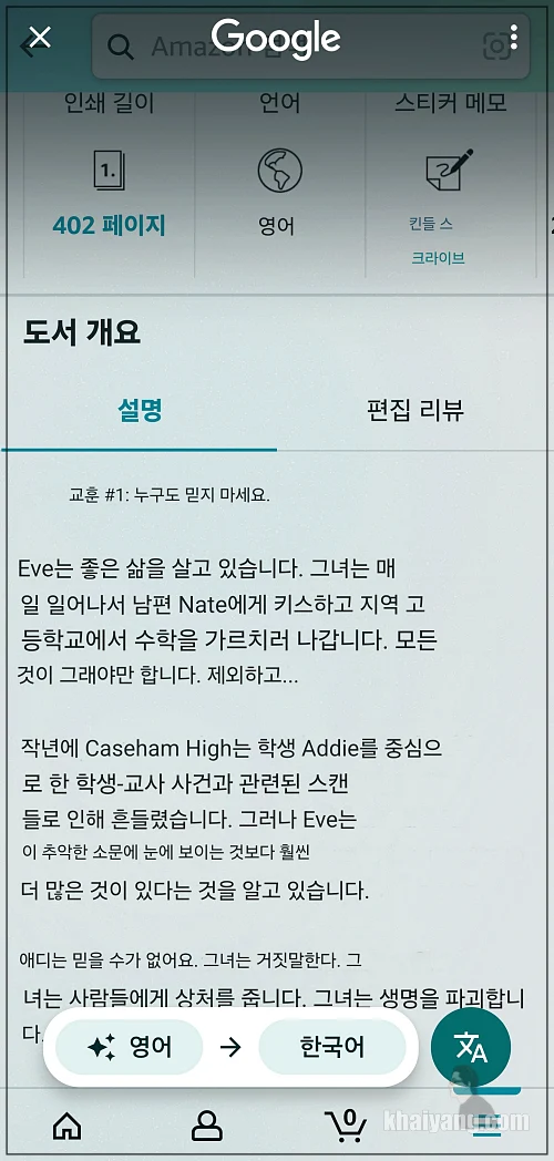 아마존 같은 해외 직구 사이트를 방문하셔서 영어로 되어 있는 화면을 바로 검색해서 번역할 수 있습니다. 대부분의 언어를 번역해 주니 이제 언어 때문에 해외 사이트 이용하는 것에 대한 두려움을 가질 필요가 없어졌습니다.