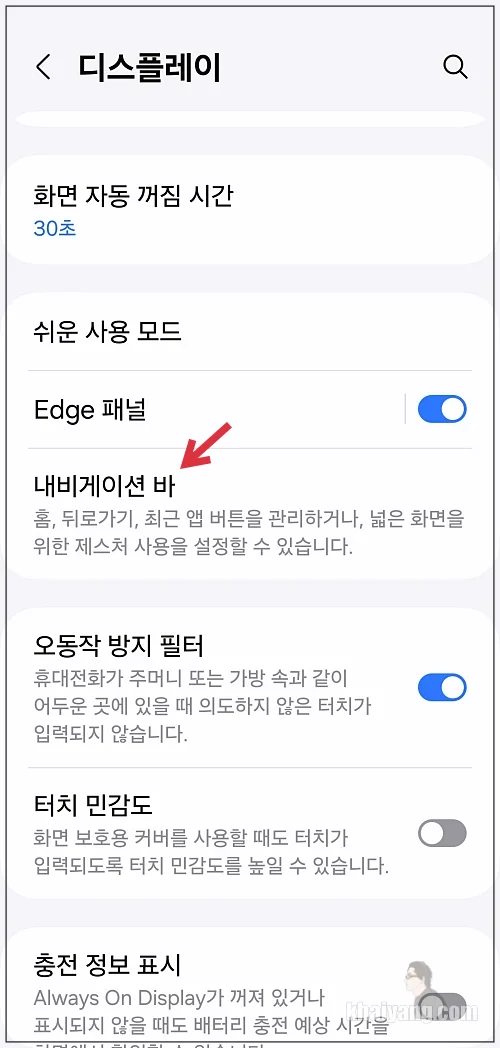 기능을 쓰기 위해서는 설정 메뉴 - 디스플레이 - 내비게이션 바 에서 활성화 시킬 수 있습니다.
