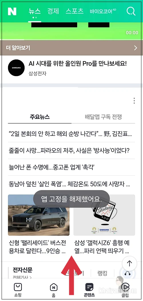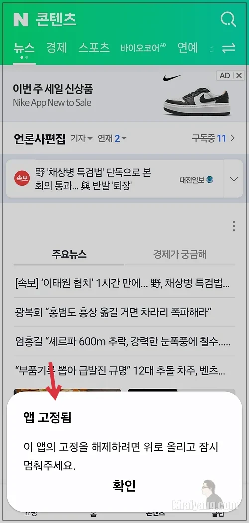 앱 고정 선택을 했으니 이제 어떻게 적용하는지 보도록 하겠습니다.