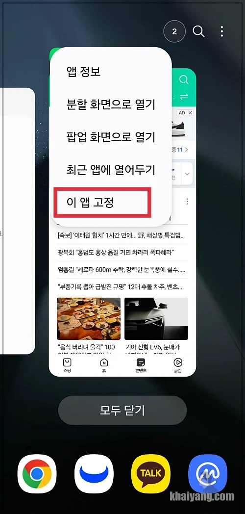 앱 고정 기능인데 저도 지금까지 갤럭시를 사용하면서 이런 기능이 있는지 몰랐습니다.