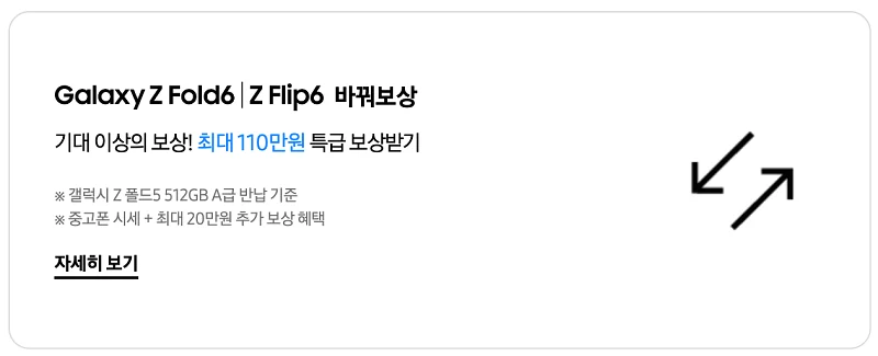 폴드6 2만원, 플립6 256GB 14,726원, 플립6 512GB 16,305원 을 받을 수 있습니다.