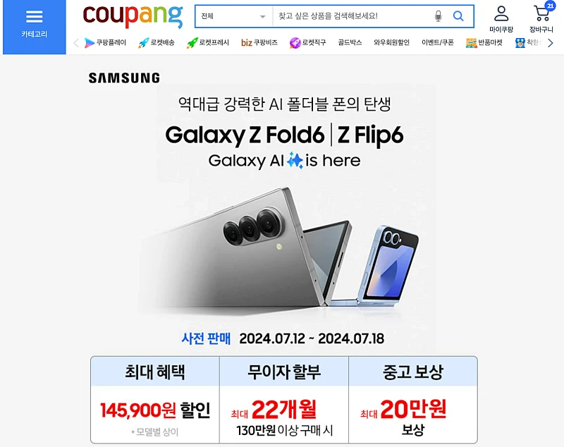 갤럭시Z플립6, 폴드6 사전예약 쿠팡
