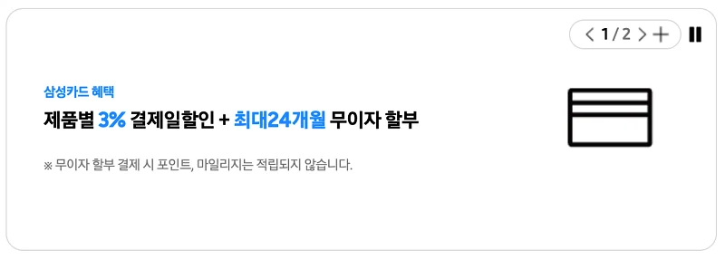 그리고 삼성카드로 구매를 하게 되면 3% 추가 할인에 최대 24개월 무이자 할부가 가능 합니다.
