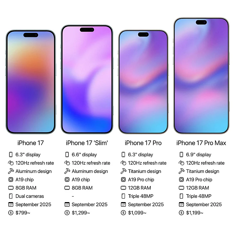 아이폰17 시리즈에서 가장 기대되는 변화는 기존 플러스 모델이 사라지고 얇은 두께를 자랑하는 슬림 모델이 추가 된다는 것 입니다.