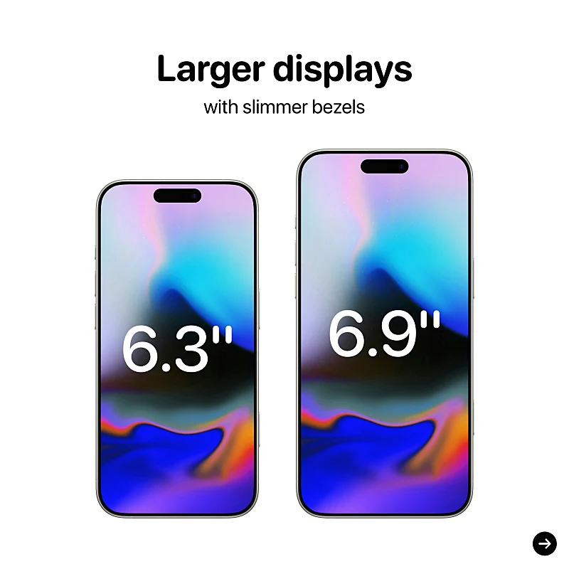 화면 크기가 커지는 모델이 있는데 아이폰16 프로 6.3인치(기존 6.1인치), 아이폰16 프로 맥스 6.9인치(기존 6.7인치)로 변화가 있습니다.