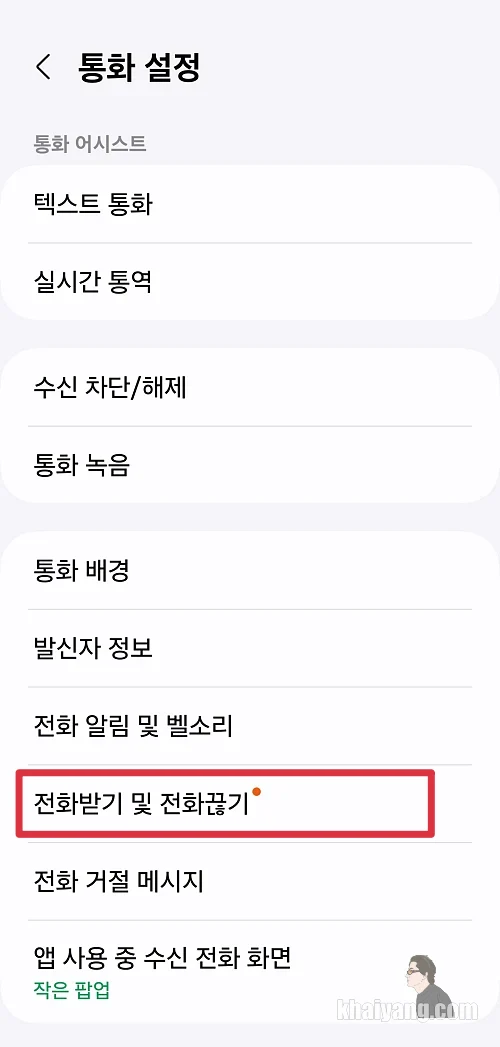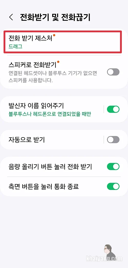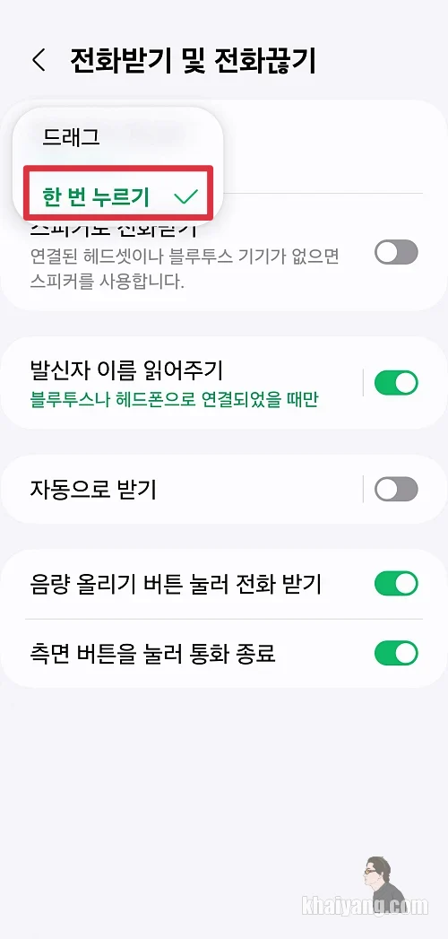 이번에 새롭게 추가된 기능중에 제가 바로 적용해서 사용하는 기능은 전화 받기 방식의 선택 입니다.