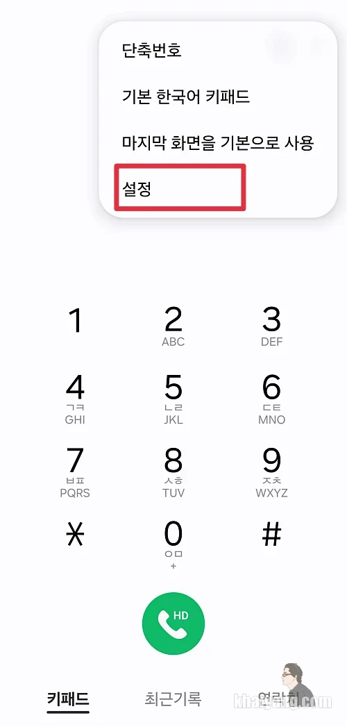 우선 전화를 열어서 우측 상단에 있는 점 3개를 클릭 한 후 설정을 선택 합니다.