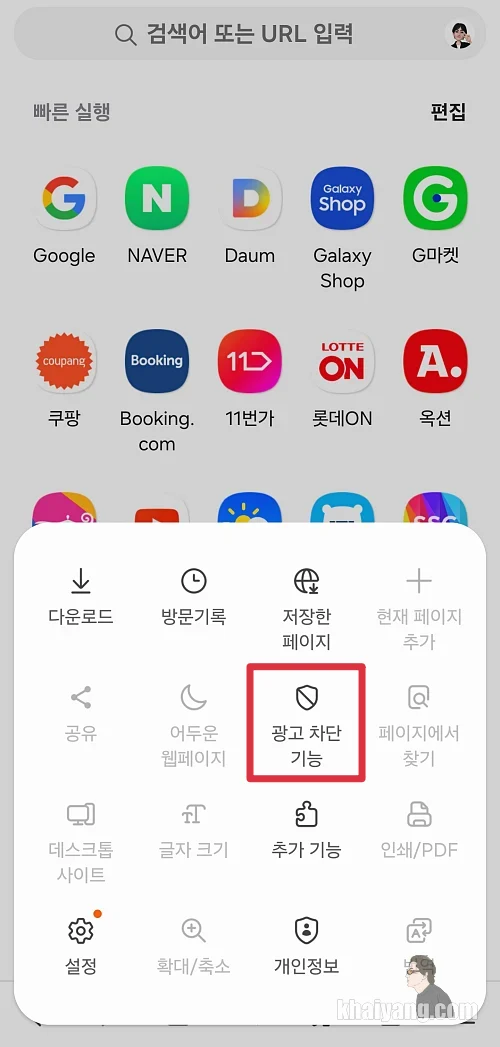 여러가지 메뉴가 나오는데 여기에서 광고 차단 기능을 선택 합니다.