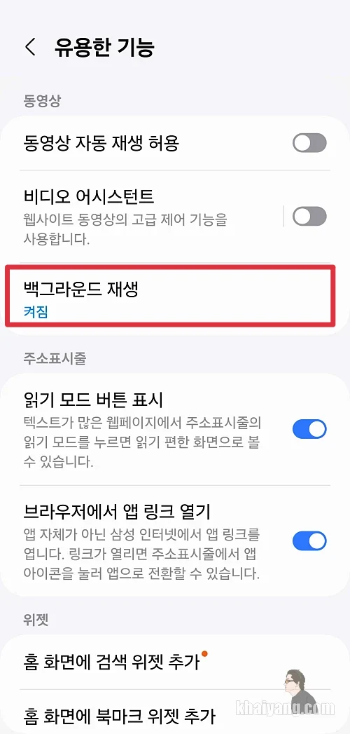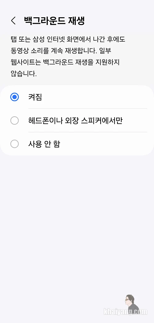 백그라운드 재생 항목을 켜짐으로 변경 합니다.
