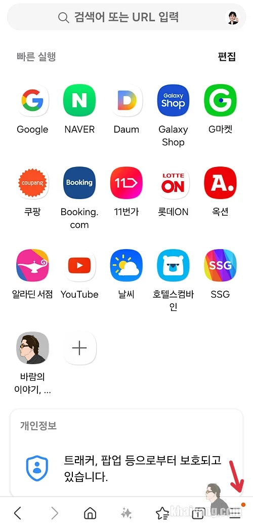 만약 갤럭시 사용자고 삼성 인터넷 브라우저가 설치되어 있다면 바로 진행할 수 있습니다.
