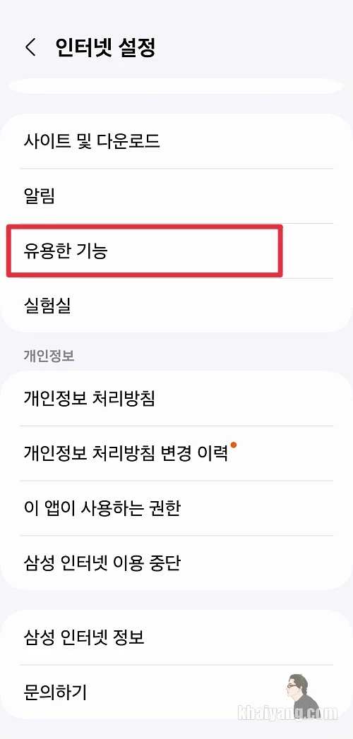인터넷 설정에서 유용한 기능을 선택 합니다.