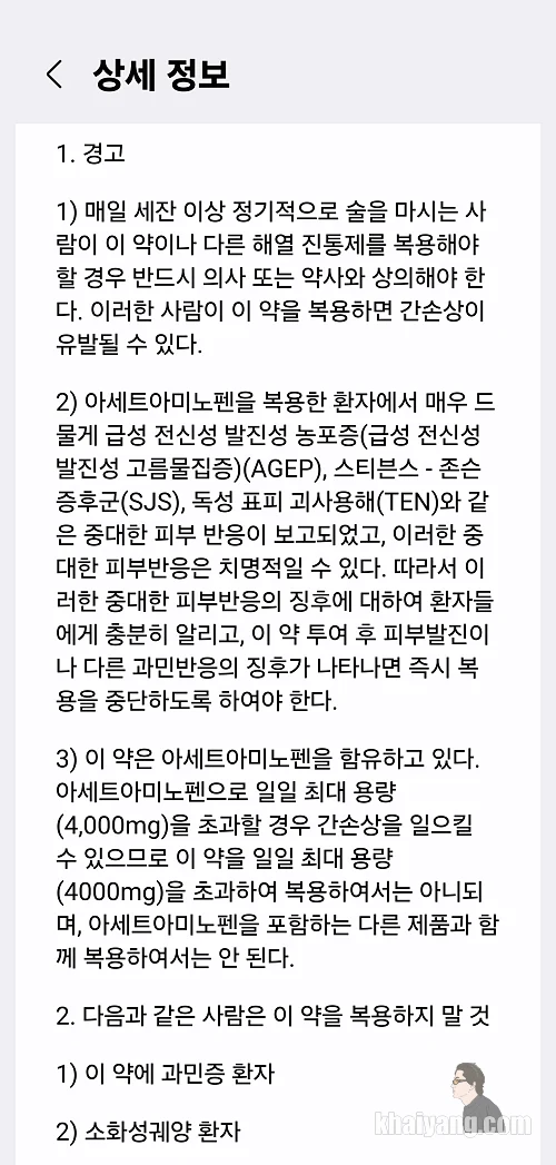 약학정보원 데이터를 바탕으로 만들어지는 정보인데 상당히 디테일하게 잘 설명이 되어 있습니다.