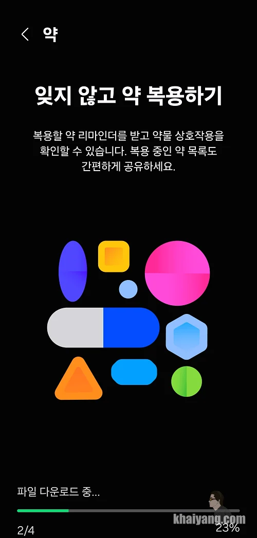 복용할 약 리마인더 기능이라고 보면 되는데 항목을 터치하고 시작하기를 누르면 파일이 다운로드 되고 설치가 됩니다.