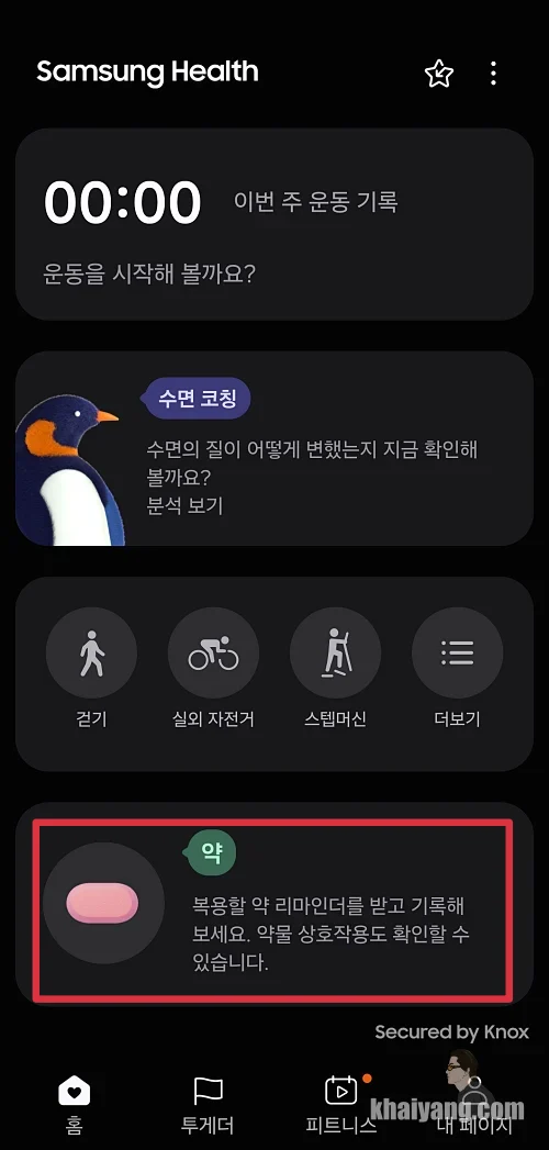 삼성 헬스 업데이트를 하고 났더니 홈 화면에 약 항목이 추가된 것을 확인할 수 있었습니다.