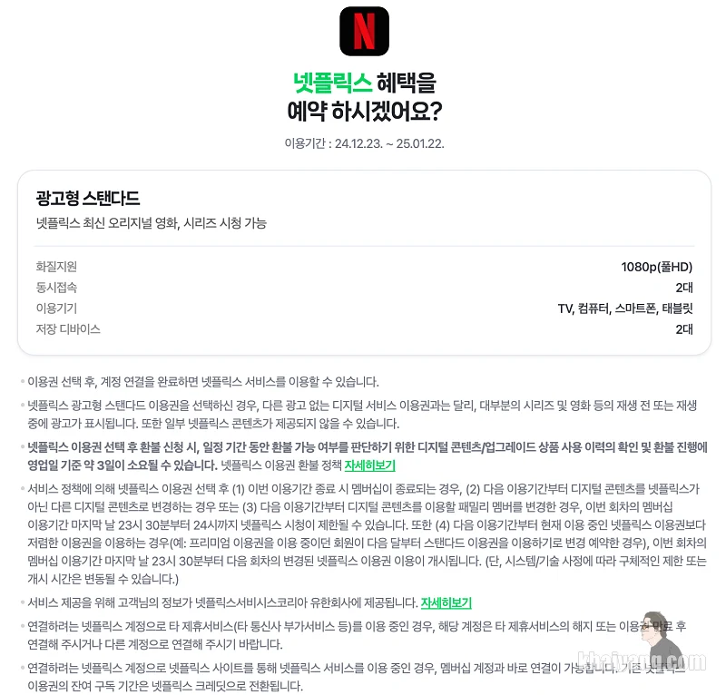 그렇지만 티빙의 혜택이 줄어들면서 가끔 네이버 멤버십 해지하고 그냥 돈 더 추가해서 넷플릭스를 볼까 하는 고민을 할때가 있습니다.