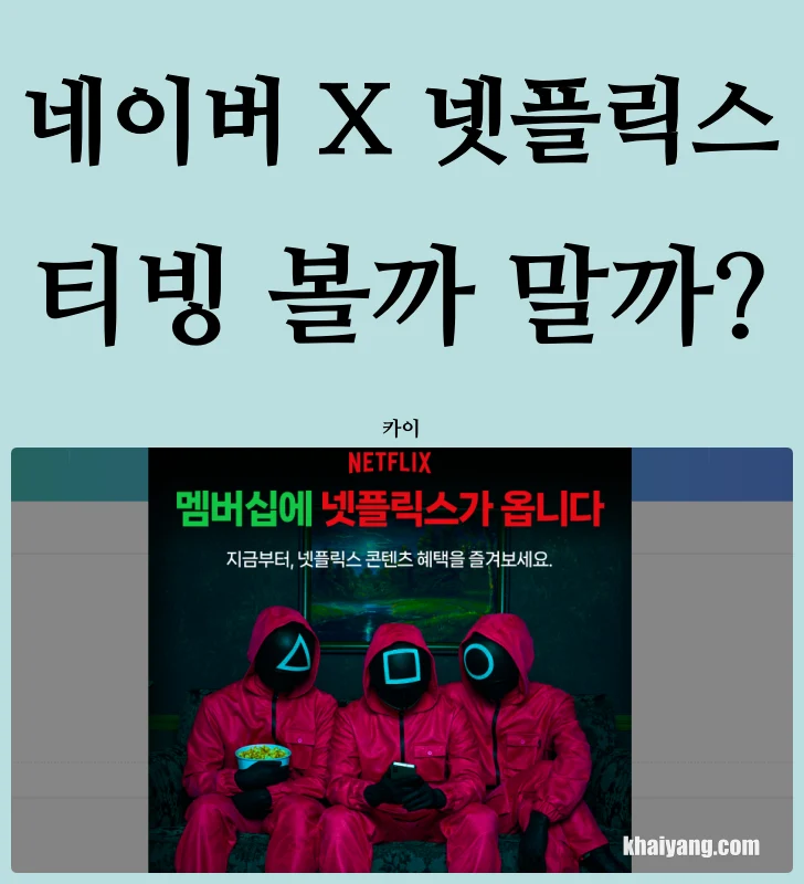 그렇지만 티빙의 혜택이 줄어들면서 가끔 네이버 멤버십 해지하고 그냥 돈 더 추가해서 넷플릭스를 볼까 하는 고민을 할때가 있습니다.