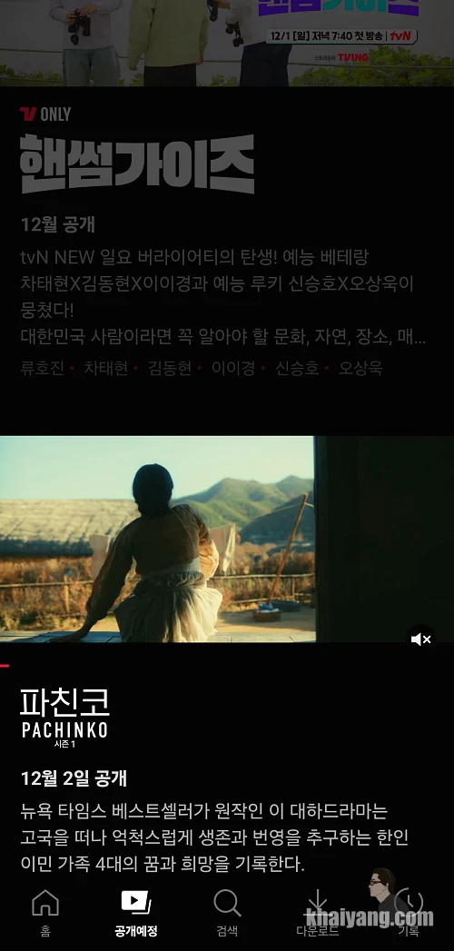 이제 티빙에서 애플 티비 플러스 콘텐츠를 즐길 수 있게 되었습니다. 티빙에서 보시면 앞으로 나올 영상 소개에서 애플 티비의 간판 콘텐츠 중에 하나인 파친코 시즌 1을 예고하는 것을 볼 수 있습니다.