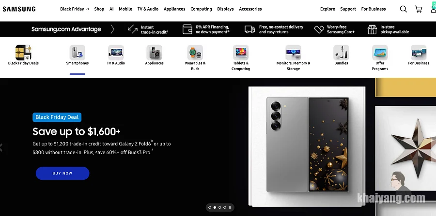 삼성닷컴 미국 사이트로 들어가보면 블프 할인 행사가 화려하게 진행중인 것을 알 수 있습니다.