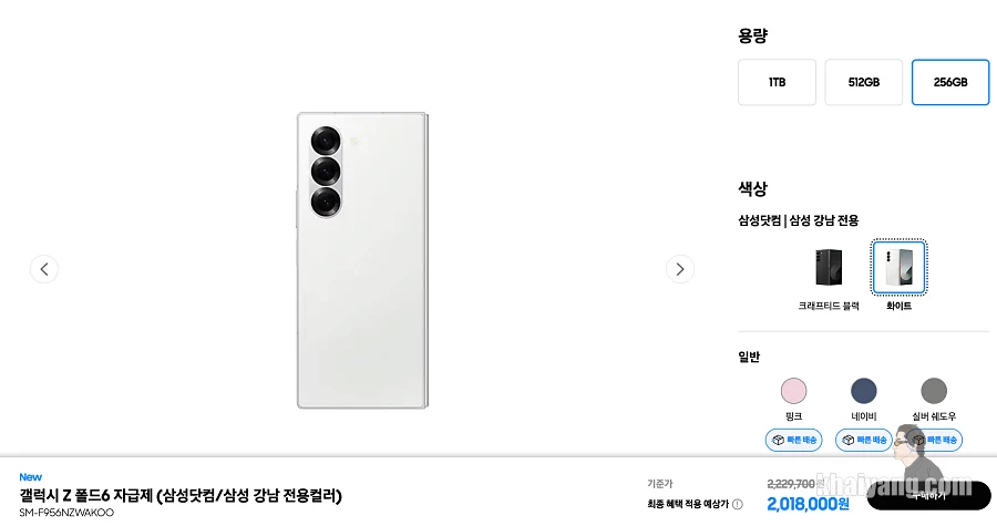 가격을 보니 256GB 전용 컬러 선택시 2,018,000원 이고 일반 컬러는 2,068,000원 입니다.