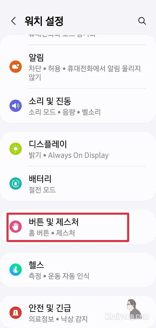 설정에서 버튼 및 제스처 항목으로 들어 갑니다.